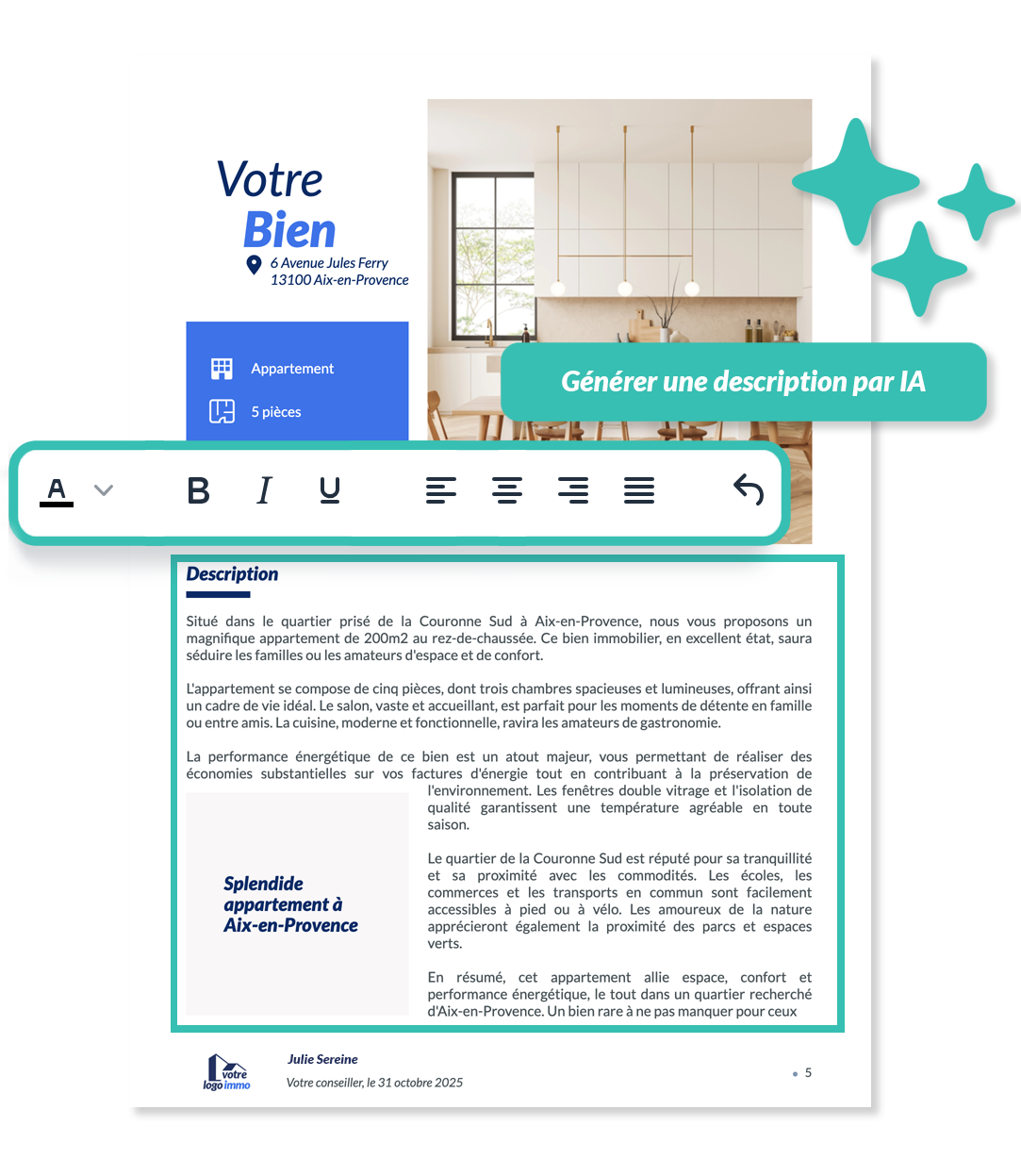 Avec Immo Alentoor, générez en un éclair des avis de valeur élégants, précis et entièrement personnalisables.