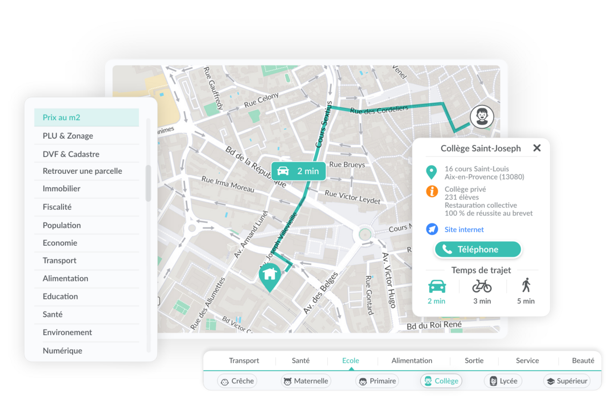 Que vous géolocalisiez votre bien immobilier à son adresse précise ou dans une zone élargie, les futurs acheteurs veulent pouvoir accéder à des informations détaillées sur les points d'intérêt autour du bien.